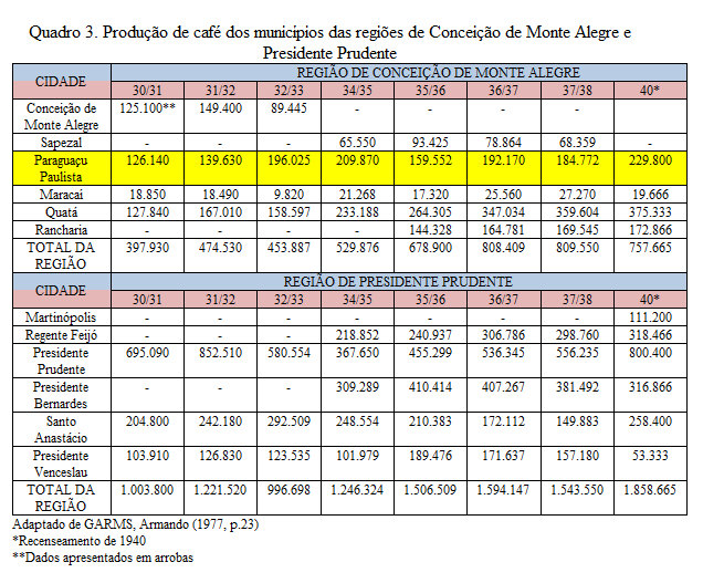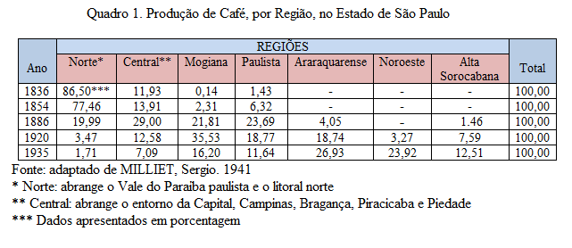 no quadro de produção de café no Estado de São Paulo. Ainda que com porcentual insignificante, o produto passava
