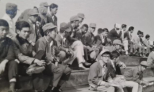 Estádio do Bom Retiro, em São Paulo, 1966. Da E para D. Em pé: Taro Moriyama,