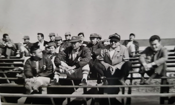 amigos e prefeito no Estádio do Bom Retiro, em São Paulo, 1967. Acervo Humihiro Nishizawa