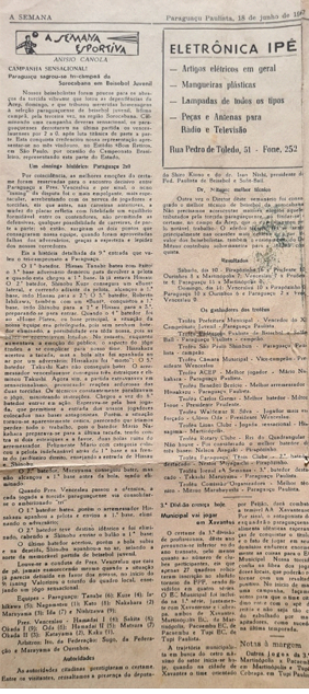 Jornal A Semana, de Paraguaçu Paulista, em 18 de junho de 1967. Acervo Humihiro Nishizawa