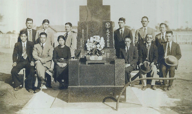Nesta foto, tirada por ocasião da finalização do túmulo de Kiujiro Marubayashi no Cemitério da Paz,