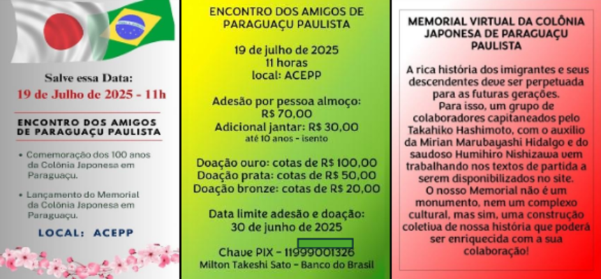 sendo, em 2025 se celebra os 100 anos da Imigração Japonesa em Paraguaçu Paulista.