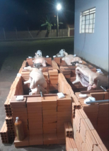 Desde a madrugada, houve a preparação dos cinco porcos no rolete para o