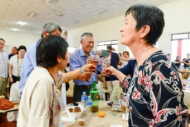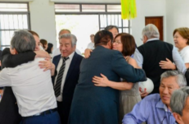 Os ex-alunos da Prof. Nobuco presentes entregaram uma orquídea para ela em gratidão aos serviços prestados para
