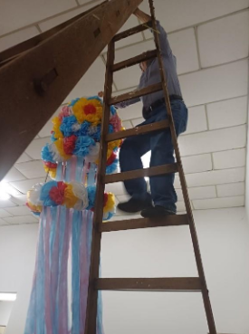 Presidente Antian coloca os enfeites preparados pelos aceppianos.