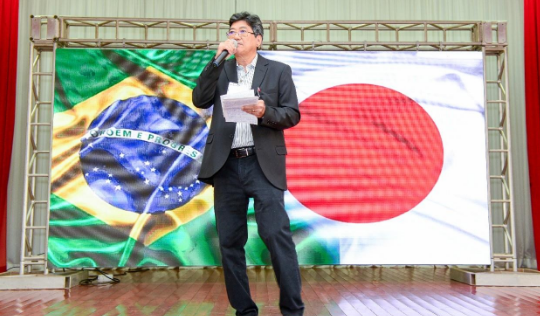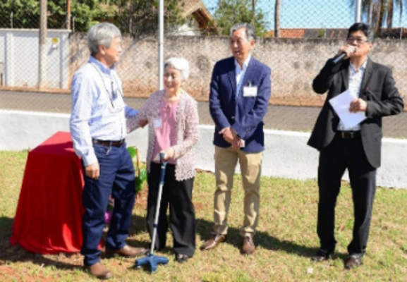contaram com a contribuição de inúmeros paraguaçuenses nikkeis. Takahiko e Mirian foram convidados a subirem ao