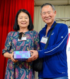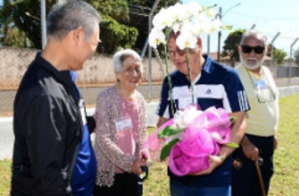 Os Amigos de Paraguaçu Paulista ofereceram ao casal Olga e Renato Ishikawa uma orquídea entregue por Etsuko
