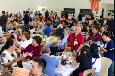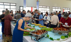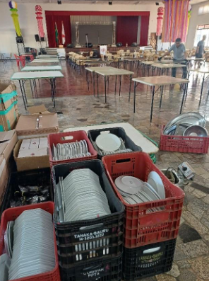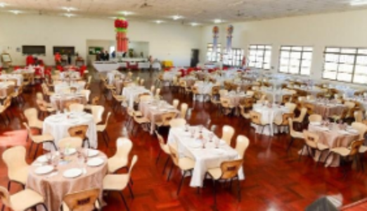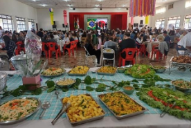 Vista do salão social da ACEPP, das mesas com o delicioso almoço servido, que