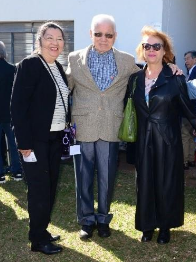 Edvaldo Hassegawa, ladeado por Etsuko Kakinohana Marubayashi e por sua companheira