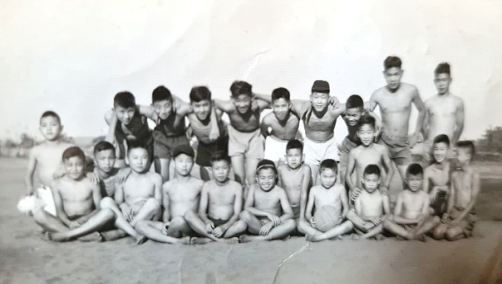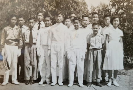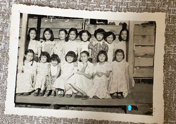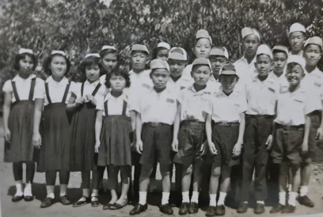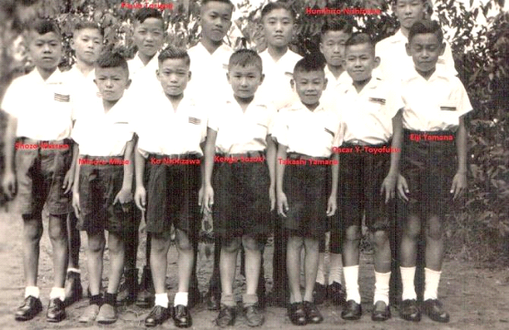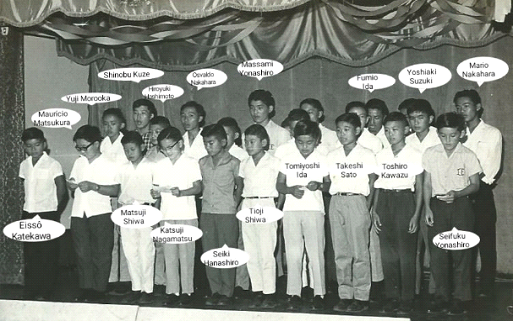 Das crianças sentadas à frente, a décima e última criança é provavelmente Massaro Nagamatsu, tendo ao lado,
