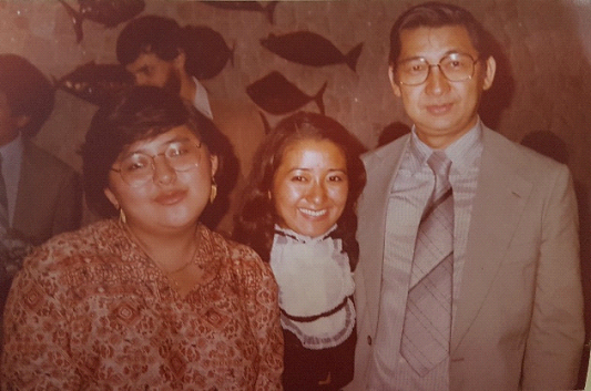 Araraquara, UNESP – 1981. Eliete, Mirian, Mitsuo. Casamento da Mirian com Osvaldo Hidalgo da Silva, na