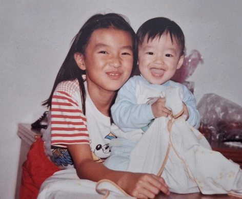 Mitsuo com o filho caçula Eduardo e este com sua irmã, Maristela. Maio de